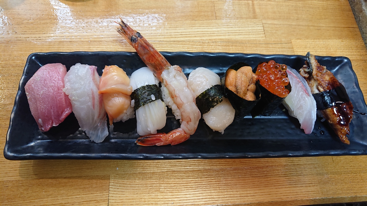 天満橋駅付近に立地する、良い意味で気楽な雰囲気のお寿司屋さんです。7月上旬の週末の夜に訪問しました。店内は、満席に近い賑わいぶりでした。注文した、「本日のおまかせ10貫」は、ウニやイクラも含まれており、豪華でした。なお、少し足りずに追加で頼んだ、「玉子」は、出汁がうまく効いており、美味でした。