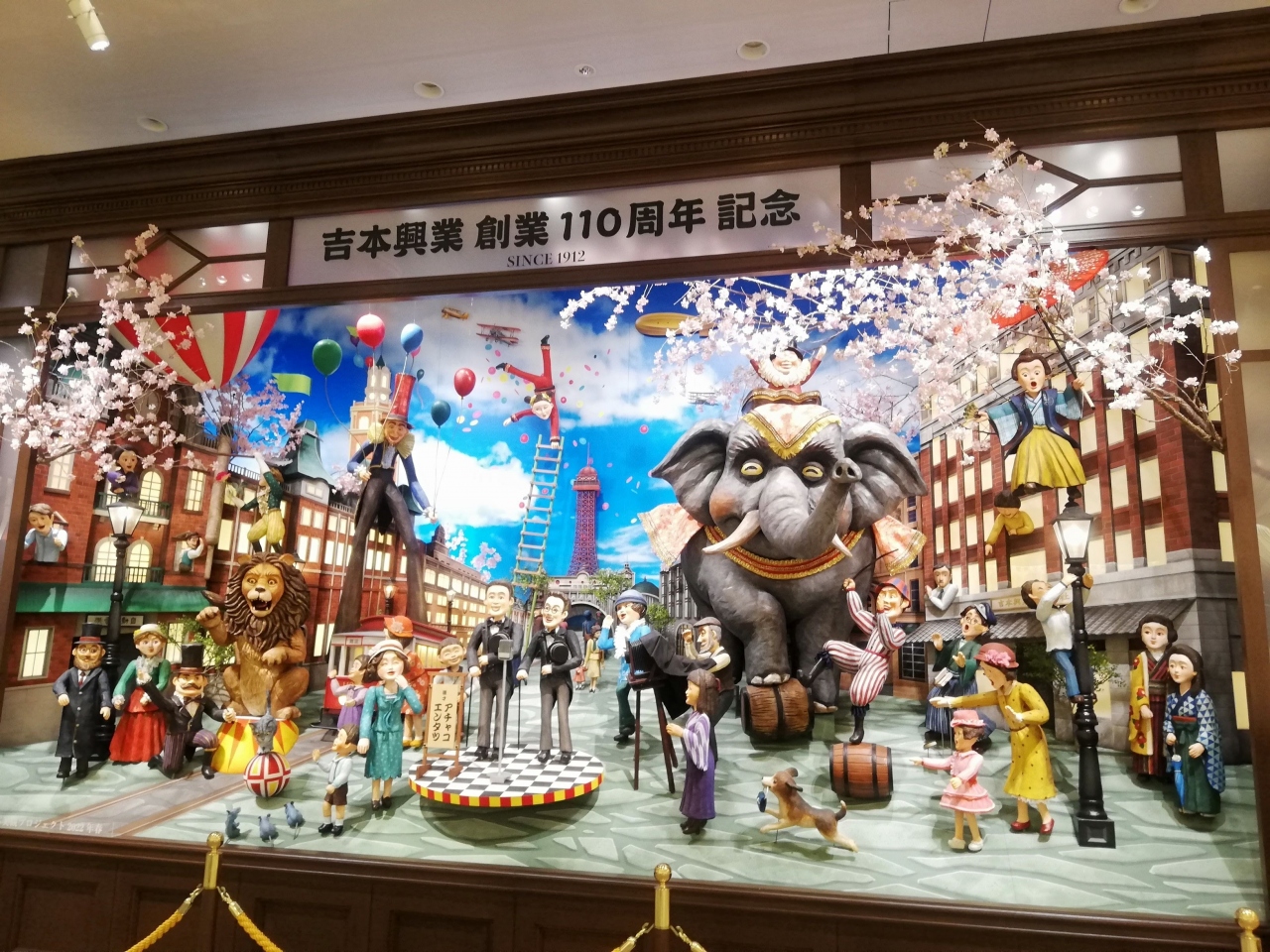 2Fに、吉本興業創立110周年を記念した大きな絵というかモニュメントがあり、エンタツ・アチャコさんなど歴代の芸人さんが生き生きと描かれていて見応えバツグンでした。