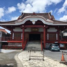 「慈眼院」は臨済宗妙心寺派の寺院で琉球王朝時代の創建で、貿易が盛んだった琉球王国にとって那覇の街や海を一望でき、渡航の安全を祈ってこの地に観音堂を祀ったと言われています。本堂は首里城を思わせる朱のお堂で千手観音菩薩像が安置されています。赤瓦の鐘楼に梵鐘が吊り下げられています。