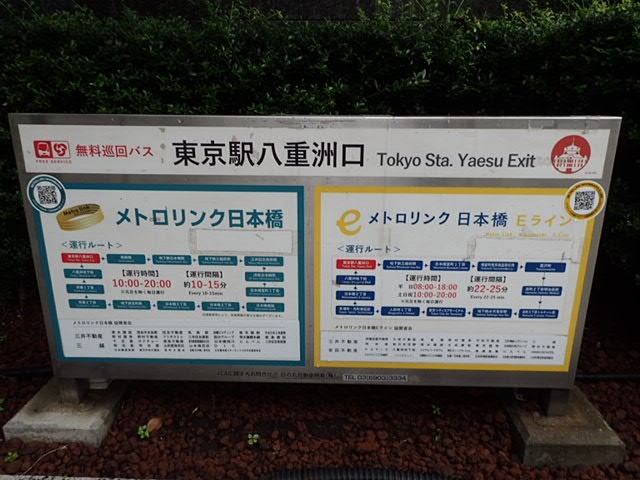 無料の巡回バスで、八重洲・日本橋・京橋の間を運行しています。毎日10時から20時まで、約10分間隔で走っており、利便性は高いと思います。車体の外装は、「江戸名所図屏風」をリング状にデザインしたものだそうです。