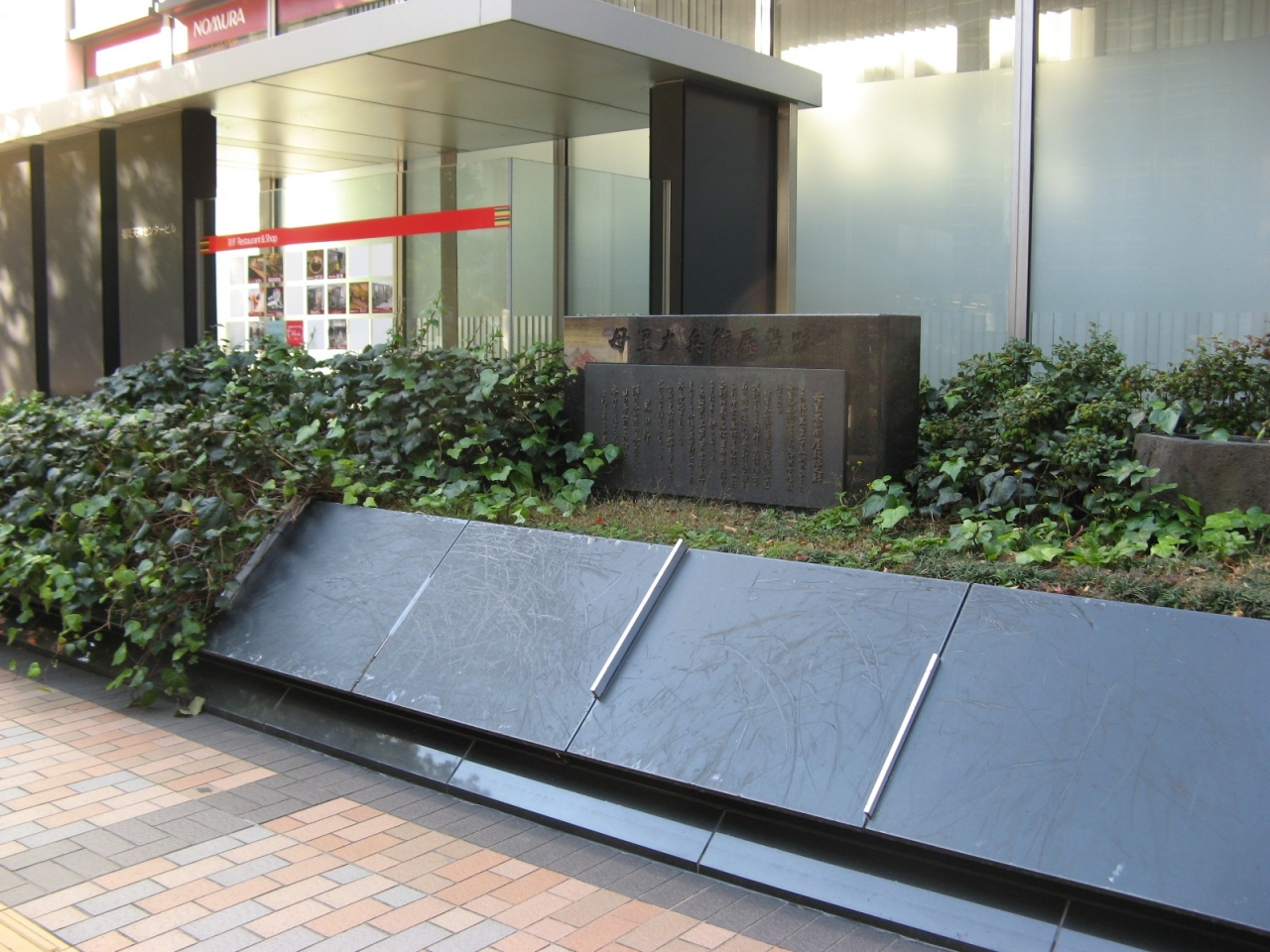 天神の明治通り沿い、野村証券ビルの植え込みに「母里太兵衛屋敷跡」の石碑がありました。黒田節の主人公母里太兵衛の屋敷跡です。説明板によると、母里太兵衛は福岡藩の勇猛な武士で酒豪であったことからその故事にちなんで“黒田節”が作られたとか。現地は石碑と説明板があるだけで遺構はなにもありません。説明板に屋敷の大きさなどを示す説明や図のようなものがあれば想像できるのにと思いました。