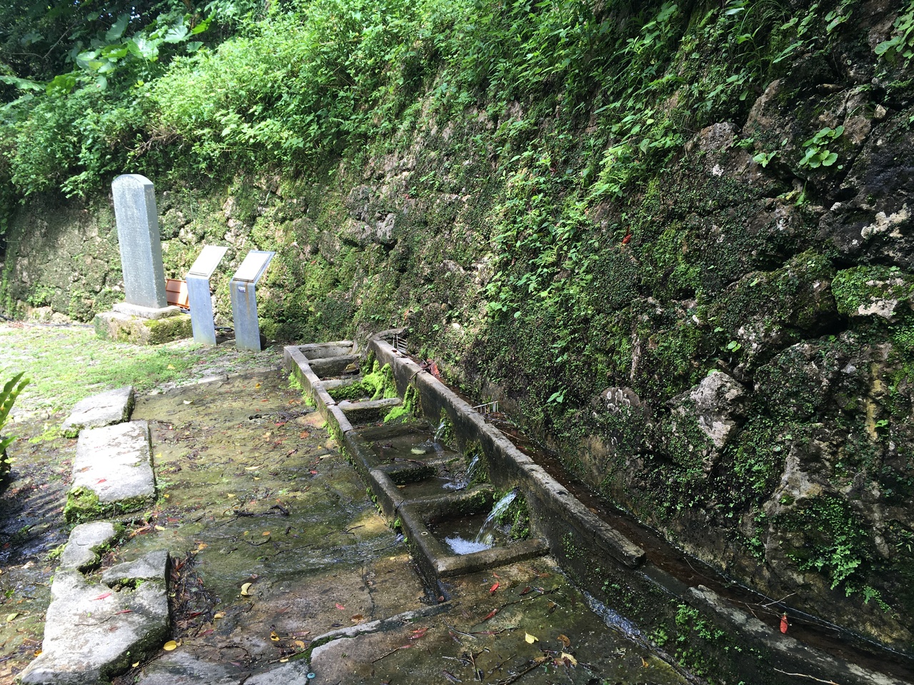 ゆいレール「儀保駅」から徒歩で10 分ほどです。真嘉比川沿いの細道を下って行くと石畳道となり、その先には琉球石灰岩の石組のヒージャが現れました。周囲はまるでタイムスリップしたような別世界!鬱蒼とした木陰の下、湧水がこんこんと流れていました。開発によりこのようなオアシスを壊すことがないよう祈っています。