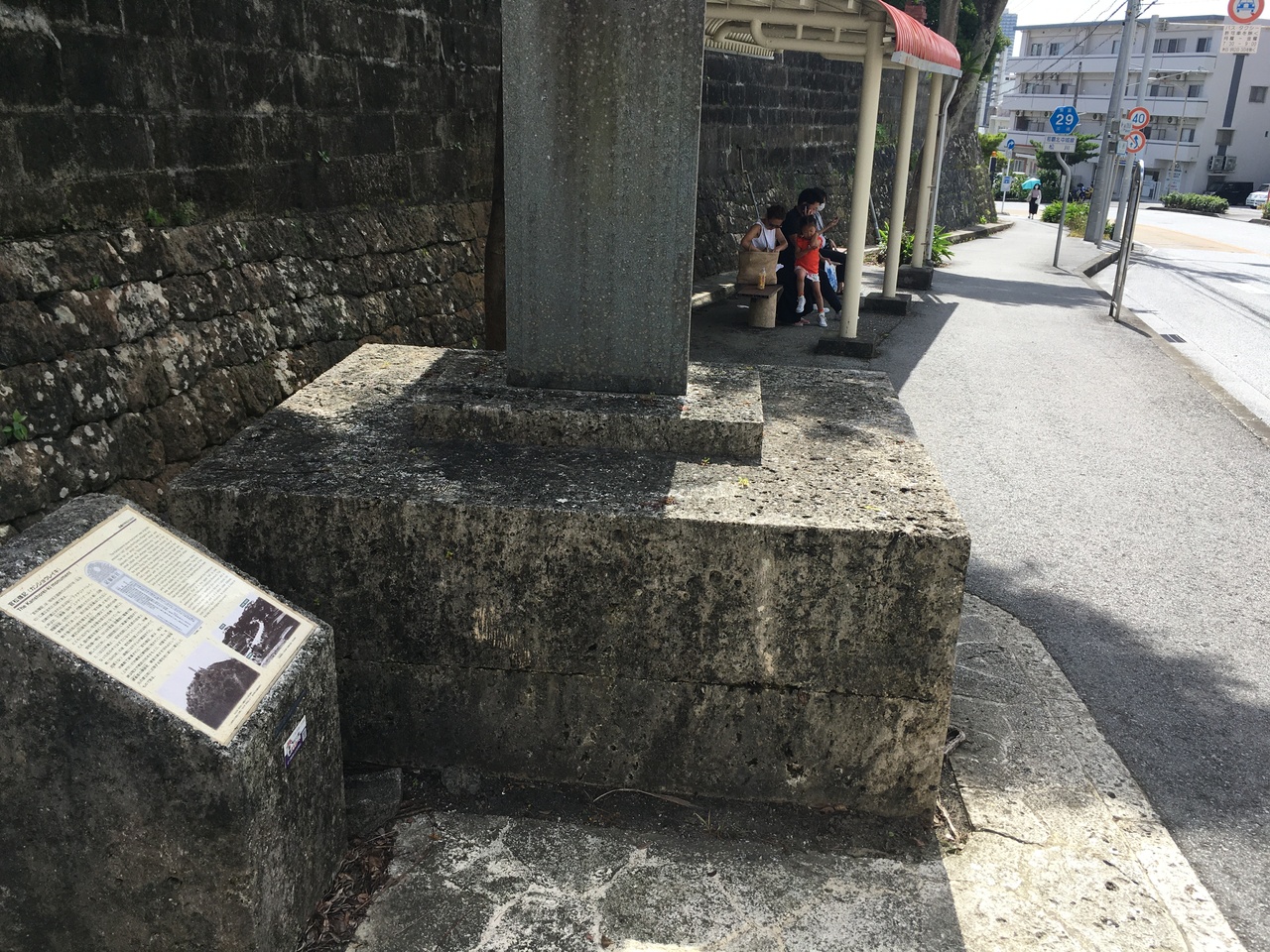 「ノボテル前」のバス停の脇に碑と説明板があります。観音堂の西に続く均整のとれた小高い丘に尚真王が数千株の松を植えて頂上に碑を建ててここからの眺望を讃え「官松嶺」と名付けたとのこと。「ノボテル」のプレミアラウンジから眺める景色はさながら尚真王の絶賛した風景だったのですね。また、この付近は大正3年、那覇と首里の区間に電車が走っていたらしいです。