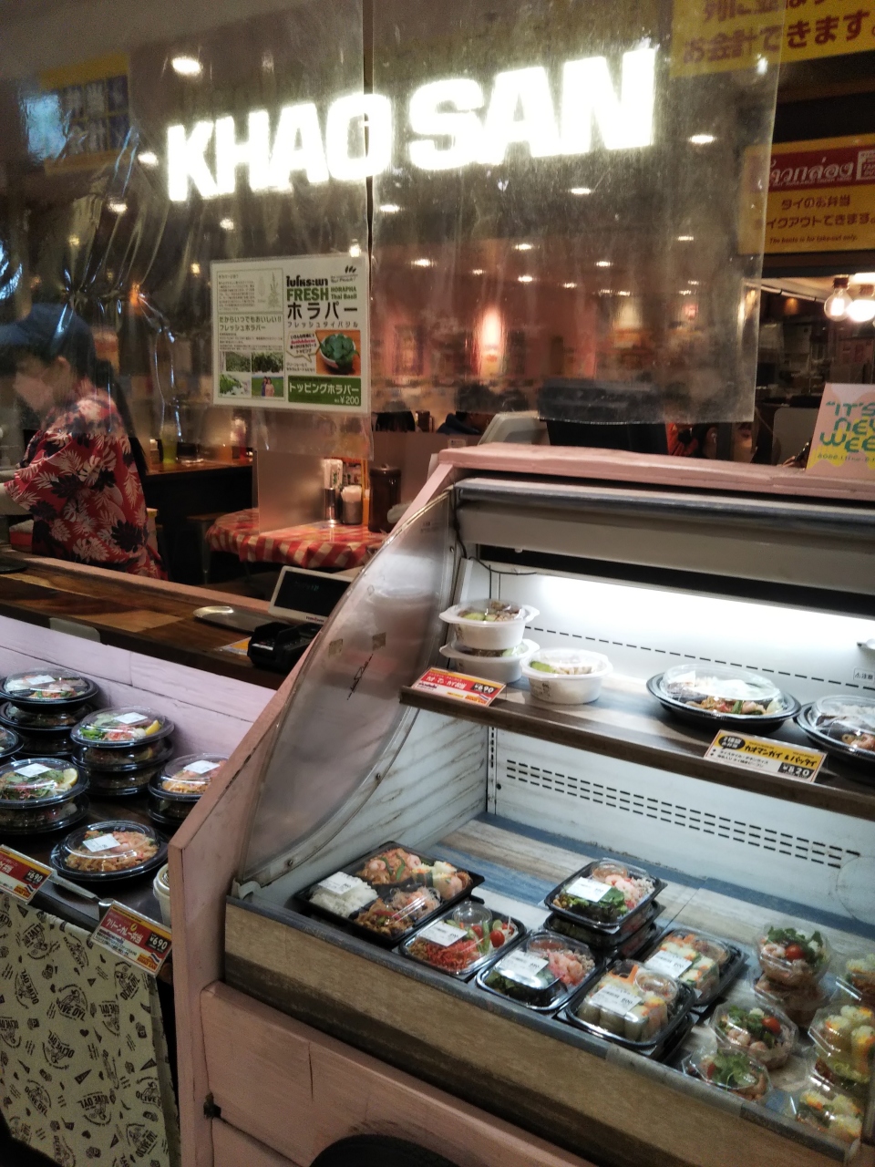 バンコク屋台 カオサンは、新宿ルミネ1の地下にあるタイ料理のお店です。気取った感じではなくて、本当に屋台のような感じ(食堂のような感じ)のお店です。なので気軽に入ることができます。店内は一人でこられている人も多いです。お弁当などのテイクアウトも多くありました。ゆっくりできるお店ではないので、食べたらすぐに出る感じです。