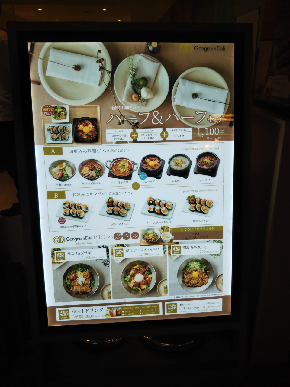 カンナムDeliという韓国料理のお惣菜のお店が、新宿ルミネ1の地下2階に入っています。確かちょっと前は別のお店だったような気がするので、新しく入ったお店だと思います。韓国料理が色々あります、とくにキンパは種類も多く、ボリュームがあります。