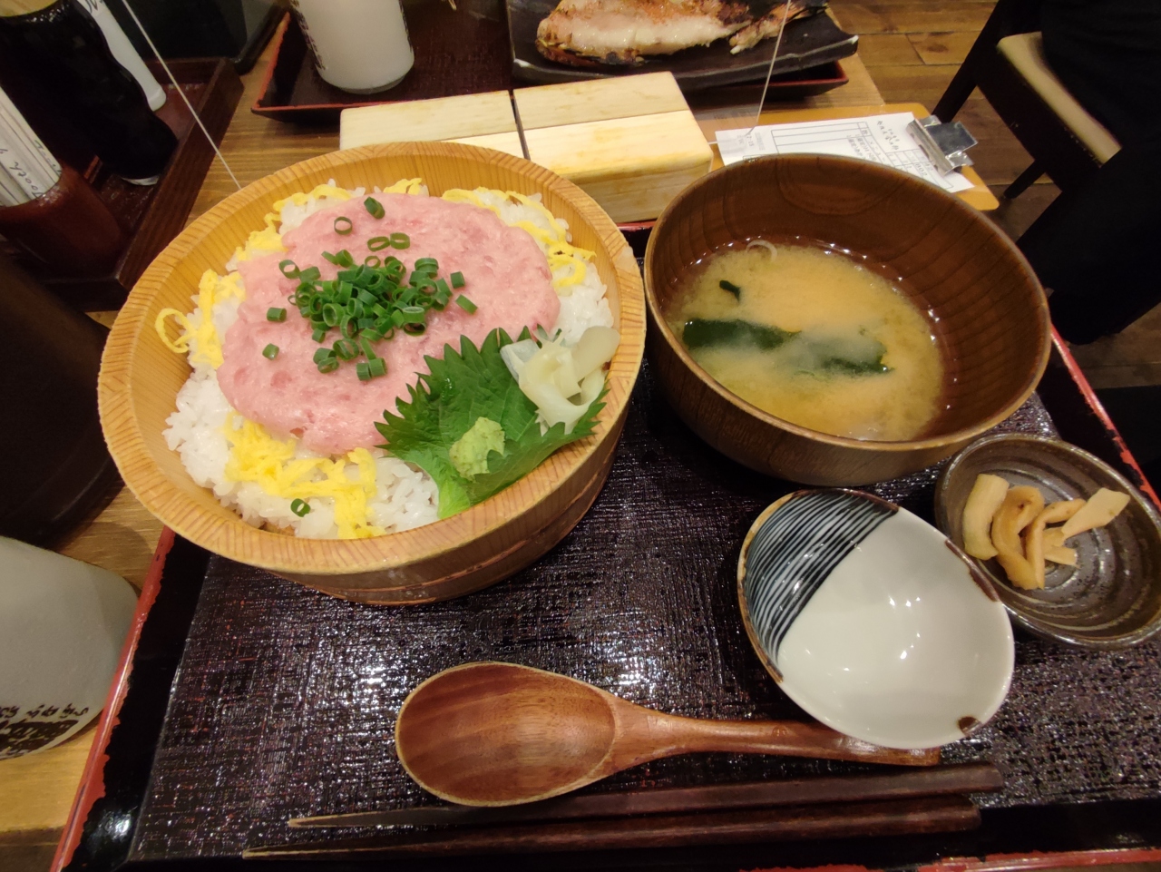 越後屋金四郎は、ランチでにぎわっています。おいしい干物もいいですが、ネギトロ丼もおいしかったです。量は少なめですね。