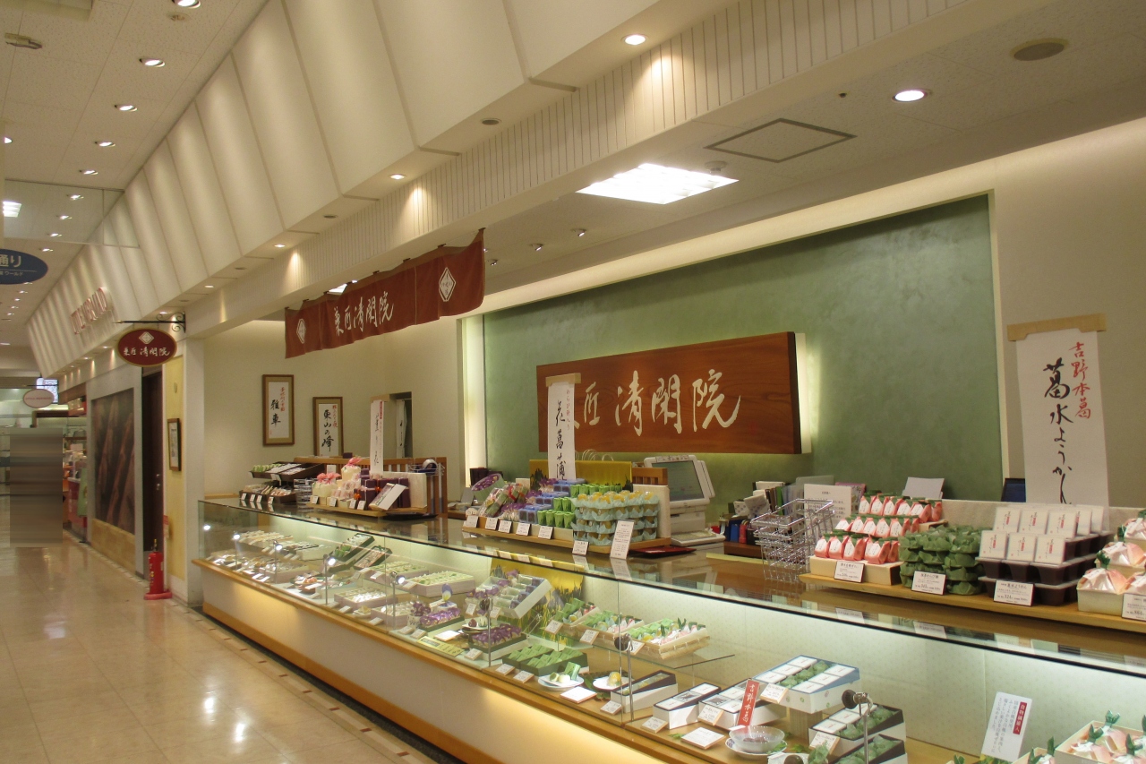 トキハわさだタウンの2街区の1Fに、鹿鳴館と清閑院が並んでありました。どちらも和菓子の源吉兆庵関連のお店です。どちらも高級感のある御菓子ですから、進物によい商品を扱っていますね。清閑院では、今日は進物ではないので、ばら売りされていた「葛水ようかん」を買いました。