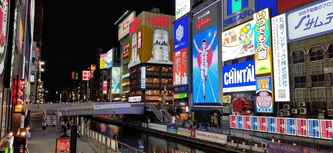 大阪には、川、堀、運河が多くあります。道頓堀川は「一級河川」に分類されていますが江戸時代に自然の川を運河として整備して水路を拡大されました。中心人物の名が安井道頓と言う名前だったので道頓堀になったようです。