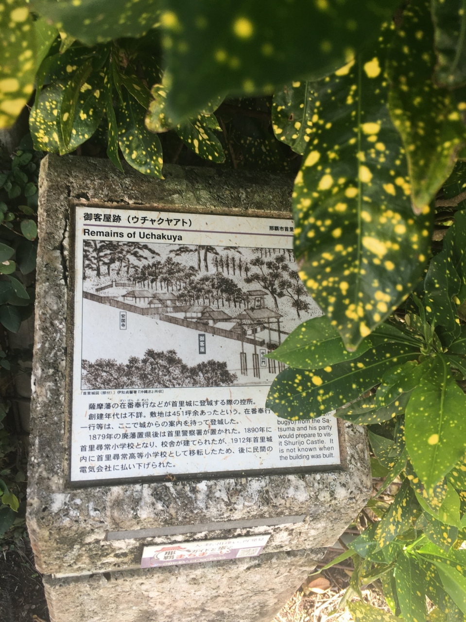 ゆいレール「儀保駅」から徒歩で20分ほどです。県道50号線沿いの「安国寺」のすぐ西側の道端に説明板があります。薩摩藩の在番奉行が首里城に登城する際の控所であったところです。451坪もあったということで薩摩藩の勢力がわかります。
