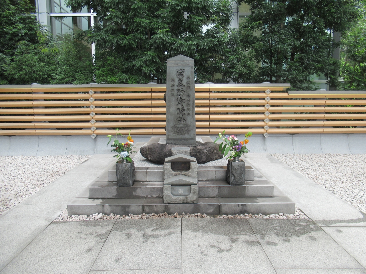 2021年に改修された将門塚を訪れました。大手町駅のC5出口の裏にあります。お詣りした休日午前、タクシーで来る人など参詣者がいました。明るい雰囲気の敷地内の四方に若木が植えられ、石段の上に墓石と燈籠の上部が埋め込まれていました。お盆直後だったためか、立派な生花が供えられていました。以前の塚の敷地内は薄暗くて怨霊の話を信じてしまいそうな雰囲気でしたが、新しくなった敷地内は明るく風通しが良くこれからもお詣りしたくなりました。