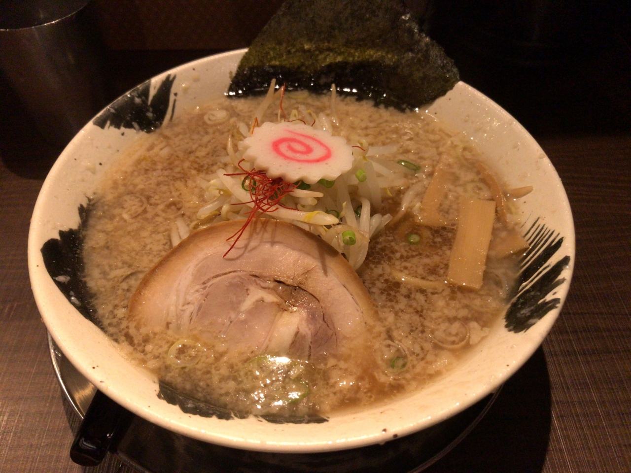 注文した醤油ラーメンはもっちり麺ともやしやメンマ、薄いかなと感じましたがチャーシューもあり美味しくいただくことができました。店内はカウンター8席ほどと残りは2-4人用のテーブルが並んでおり混雑時は少し待つこともあるかも。