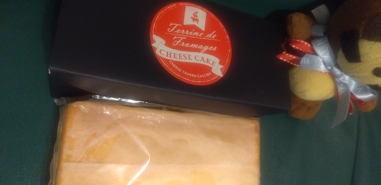 紙袋に入った冷凍のチーズケーキ。保冷剤も入れていただいたのですが、あまりの暑さに紙袋がぬれてゆがむほど。暑い日の持ち歩きは注意が必要です。