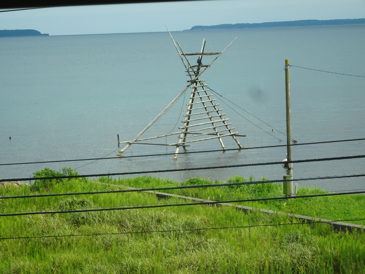 車窓からは海、そして「根木のボラ待ちやぐら」というこの地方独自の漁法の仕掛けも見えました。