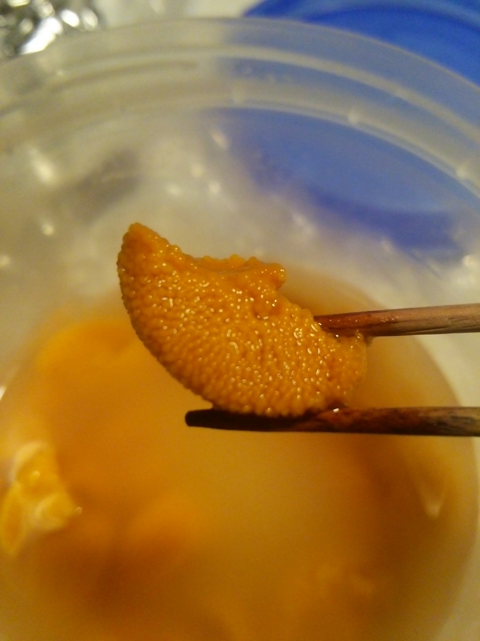 礼文、利尻のエゾバフンウニが解禁ということで、目に入った空港店舗入口!ミョウバン不使用の塩水ウニを購入!なにも見ないで勢いで買ったので何グラム入りか不明…たぶん100グラム?!6800円でした。