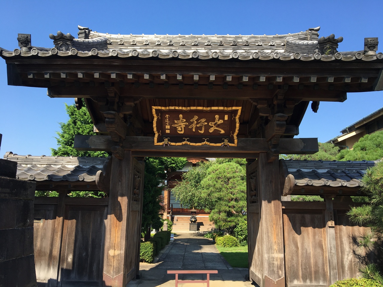 日暮里駅から上野駅に向かって谷根千エリアを散歩中、上野桜木の交差点の少し先で、こちらのお寺を見つけました。木造の山門がとても立派で、「大行寺」と大きく書かれた文字が目立っていました。山門から本堂まで続く境内も整備されていて、落ち着いた印象でした。