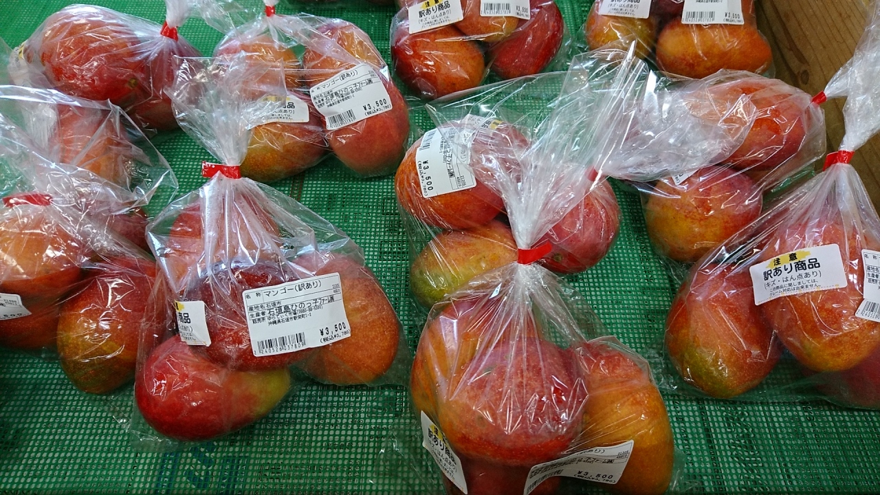 農畜産物直売所、八重山の特産品が揃っています。お目当ては、この時期ならではのマンゴーと前回ハマってしまったオオタニワタリ。