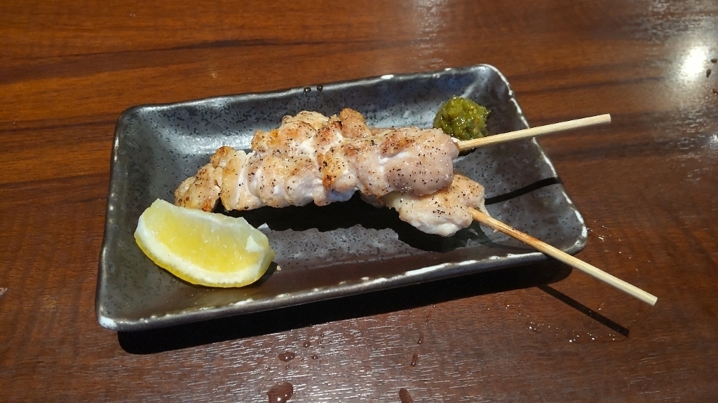 ビールを飲んでいると、もも串が2本出てきた。