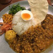ビルの2階、階段で上がりました。カレーの種類が豊富。そして1種類、2種類、3種類とカレーをチョイスできます。1種盛りのダルを選んだのですが、ちょっとカレーの量が物足りなかったのと、味が単調になってしまうので、2種盛以上をお勧めします。ランチタイムは3時まで。ご注意ください。