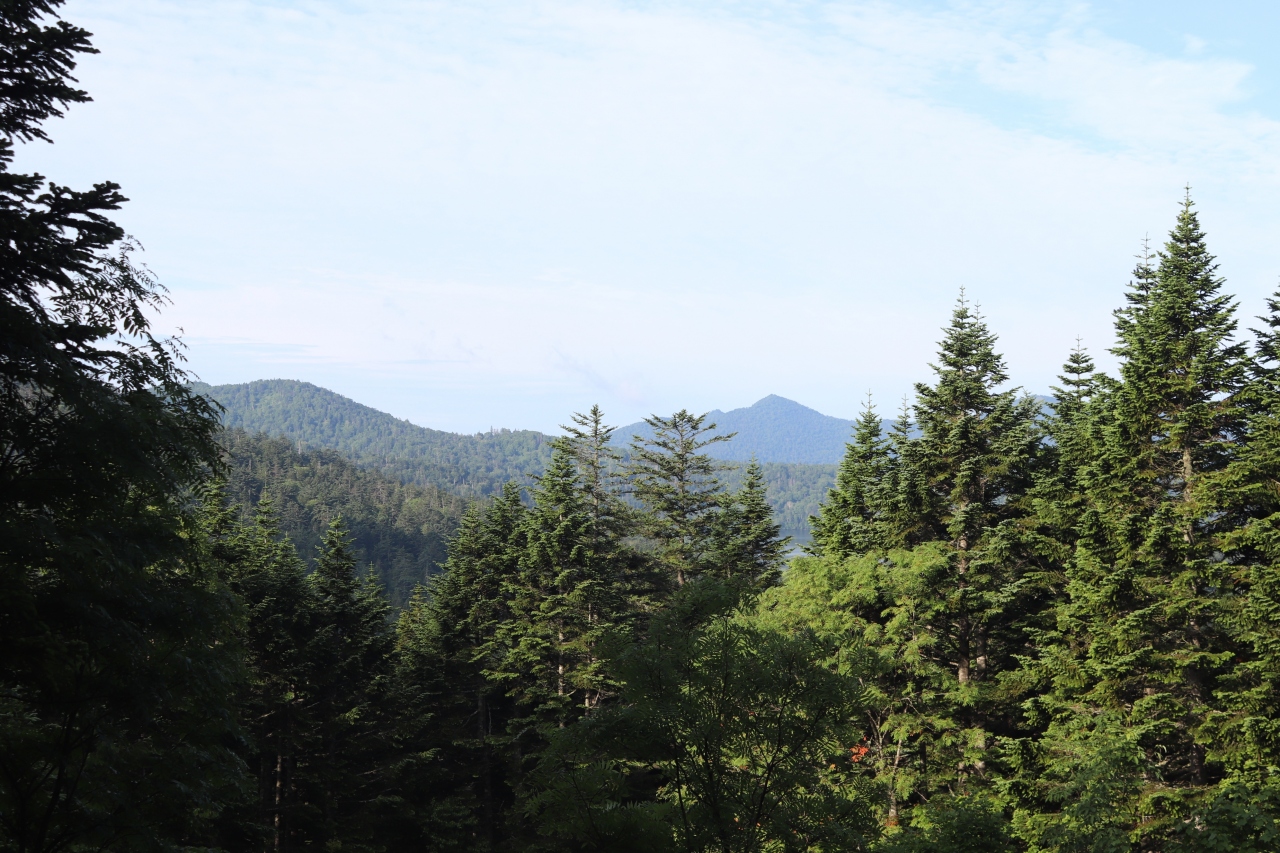 シャトルバスや路線バスが発着する駐車場から登山口を20分ほど進んだ展望台です。ベンチが置かれており、最初の休憩地点として、トレッキングシューズのひもを締め直しました。遠くにちょっと尾瀬沼らしき池がちょっと見えますが、眺望はイマイチです。