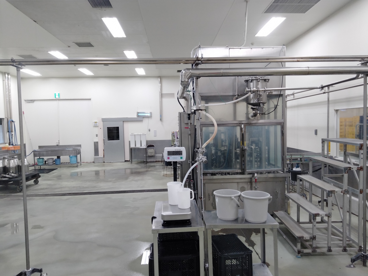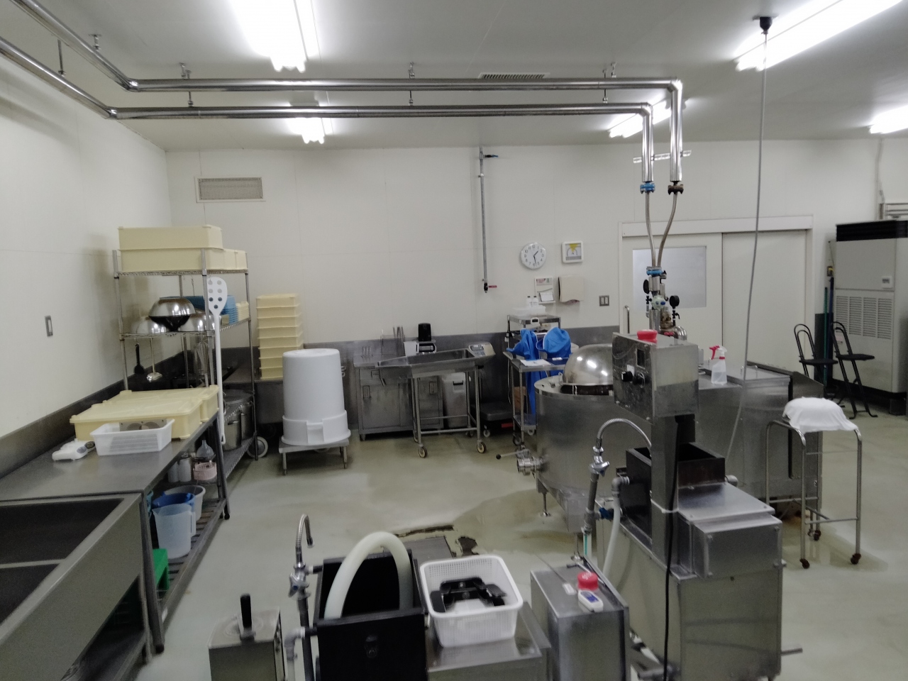 で朝霧高原で搾乳された生乳がそれぞれの製品ごとに製造室や工程が分かれていて、窓ガラス越しに見ることが出来ます。