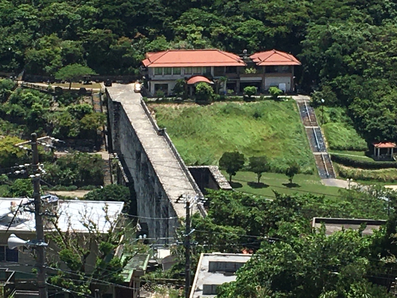 ゆいレール「首里駅」から徒歩で30分ほどです。住宅地の中にあります。首里城の城壁を思わせるような琉球石灰岩の石造りの美しいダムです。敷地内には駐車場や展示室もあり、ダム建設時の写真が展示されています。ダムの中央には県指定文化財の「ヒジ川橋」が架かっています。「ハブ注意!」の看板があります。