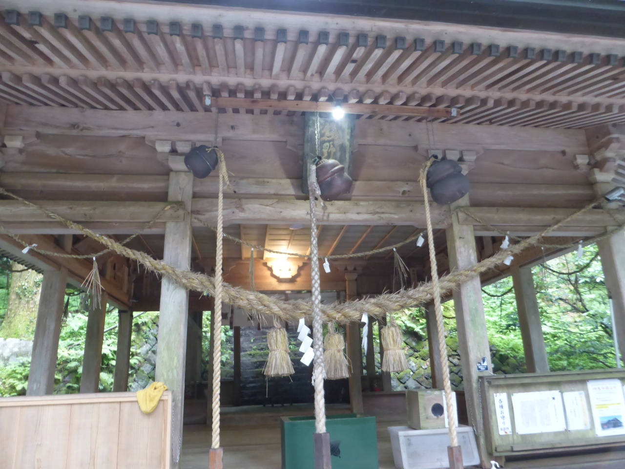 神殿に続く参道は石の階段で思った以上に長いです。参道沿いには、97基の石灯籠が並び、苔生した緑色の世界は実に幻想的な雰囲気。神殿の後方には、巨大な縦横10mの大風穴「穿戸(うげと)岩」があります。どんなに困難な目標でも必ず達成できる象徴として、受験合格や必勝のご利益があると言われています。265号線沿いに広い駐車場があります(無料)。