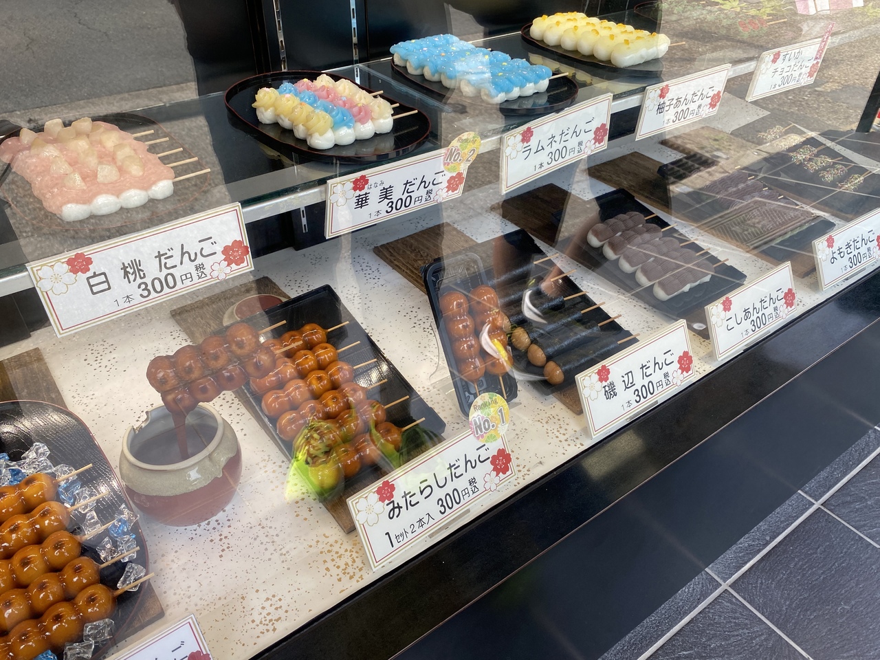 お団子の食べ歩きをしたい方にオススメ。チョコレート団子やスイカ団子などの、変わり種もあります。お団子以外にも、お煎餅もお土産に売られています。嵐山駅に近く、渡月橋のすぐ手前です。支払いが現金のみなのが残念なところ。