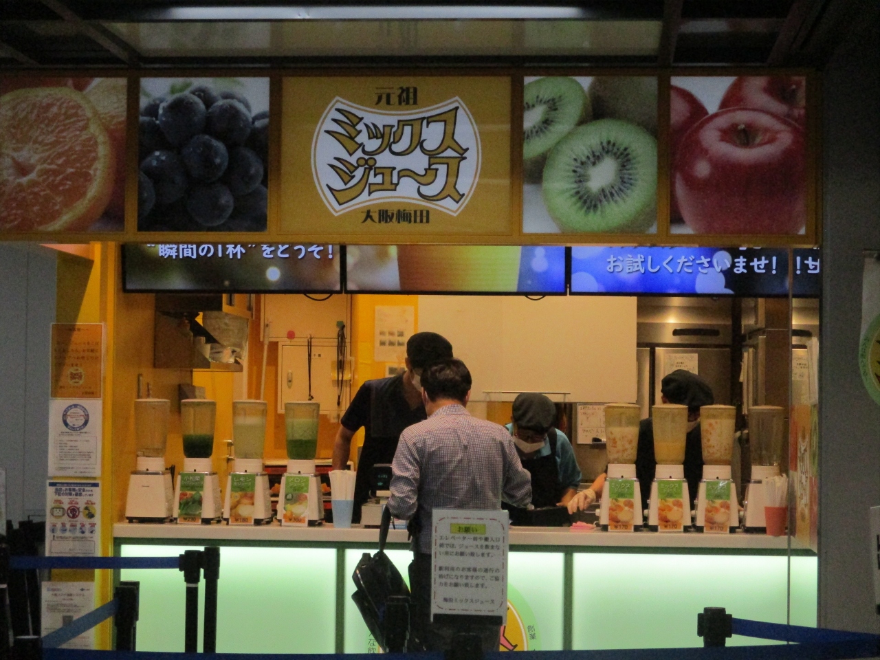 阪神電車梅田駅の先頭の改札を出た先にあるジューススタンドです。50年以上の歴史があります。昔から何度も飲んでいます。久しぶりにミックスジュースを飲みました。コップになみなみとつがれます。こぼれそうでこぼれないです。一杯170円です。冷たくておいしい!他にレモンジュース、メロンジュースなどもあります。