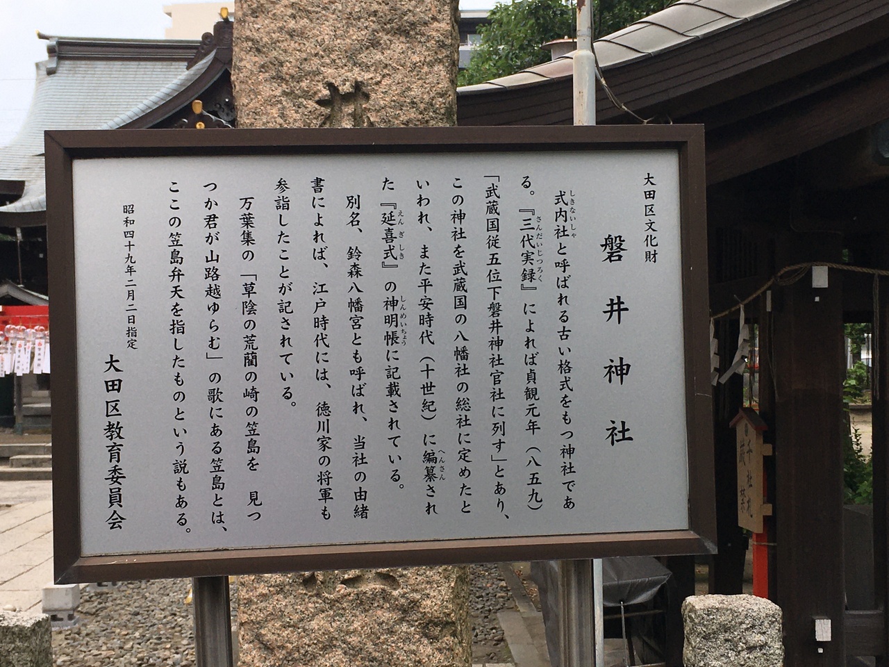 京浜急行線「大森海岸駅」から徒歩で5分ほどです。第一京浜沿いにあります。東海道七福神のいちばん南の神社です。創建は1400年ほど前、敏達天皇といわれます。江戸時代には「鈴ヶ森八幡宮」と呼ばれて将軍も参詣したとか。境内の左の池には笠島弁天が鎮座しています。