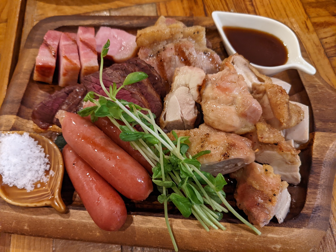 JR船橋駅(南口)から徒歩7-8分程と、駅からは少し離れた場所にある肉バルです。カジュアルな雰囲気のこじんまりとした小さなお店でしたが、肉の種類は豊富で、カイノミなどの希少部位をお手頃な値段で食べることができました。カイノミは脂が乗っていて、柔らかくと美味しかったです。