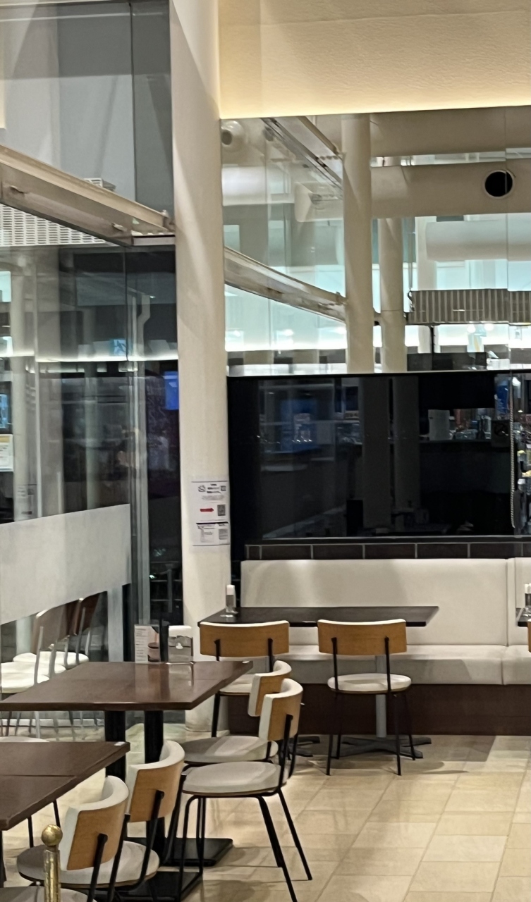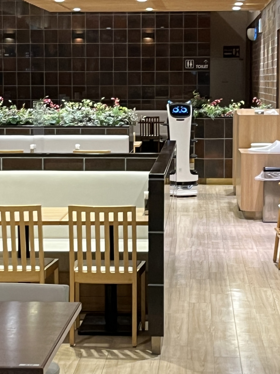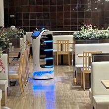 〈配膳ロボット〉が お料理を運んでくれるので、