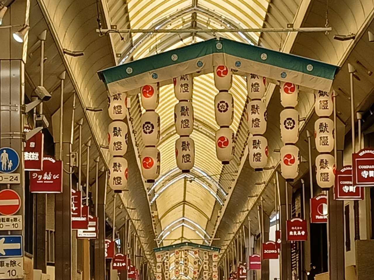 京都の夏は祇園祭で真っ盛り、祇園ばやしも流れている寺町新京極商店街です。並行して新京極通りもあり、性格が似ているのでどちらか好みの分かれるところです。