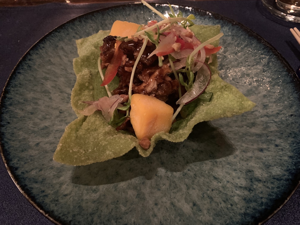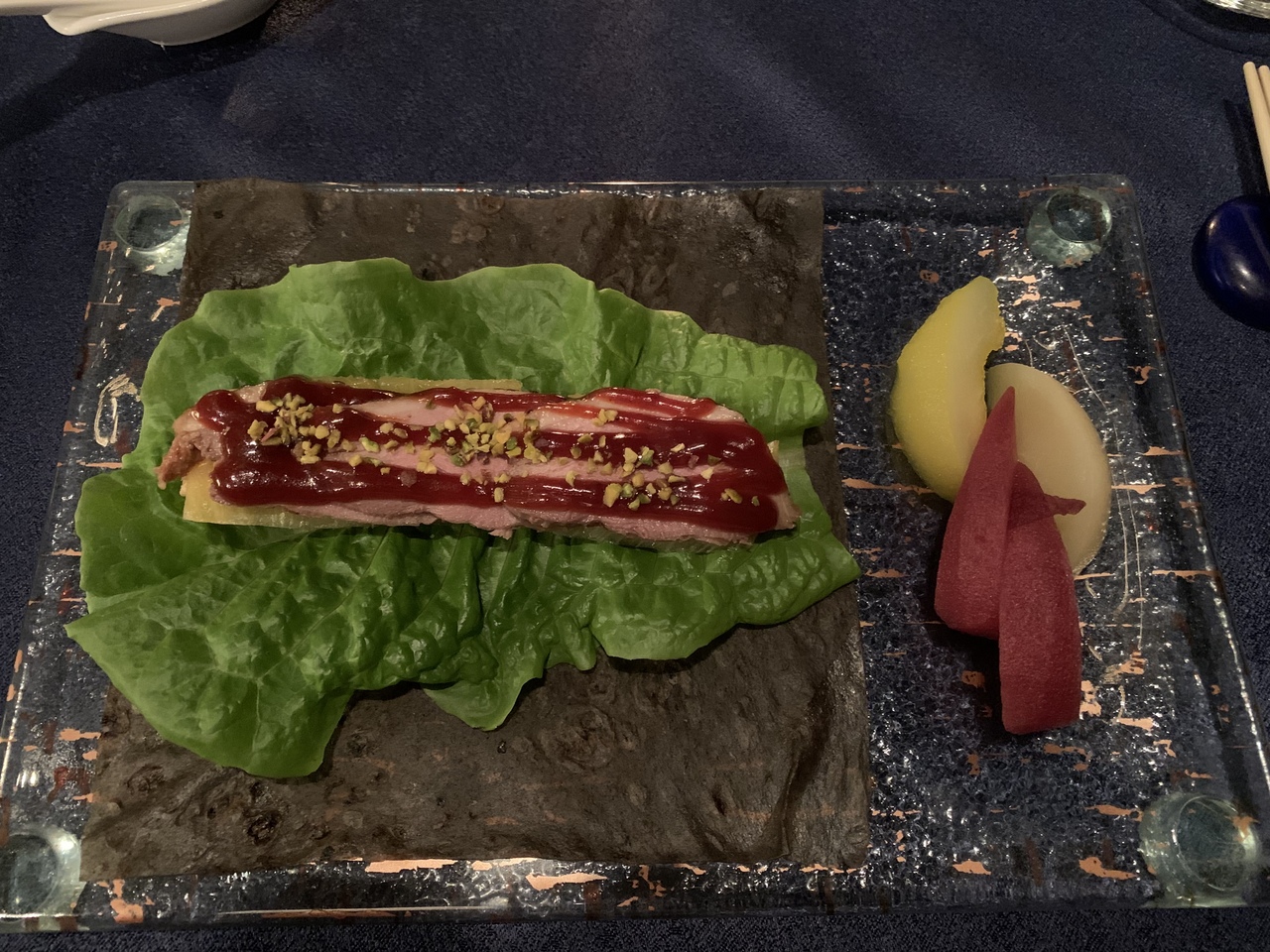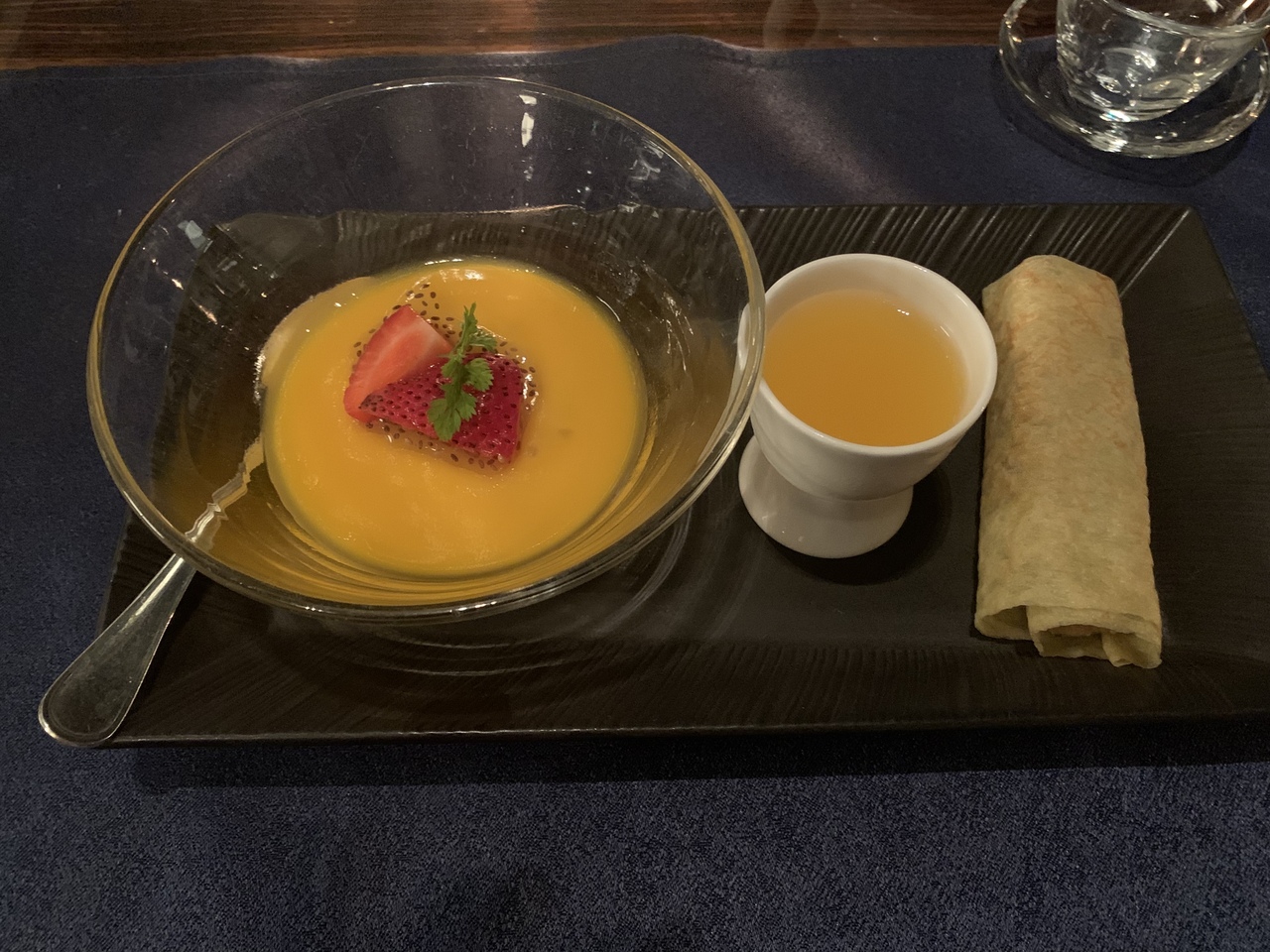 店内は青で統一され落ち着いた雰囲気です。コースディナーをオーダーしました。テーブル毎同じメニューにしなくてもいいそうです。1つ1つが上品で落ちついた感じでおいしかったです。中華料理は比較的しょっぱい感じがしますが、ここのお料理はちょうど良かったです。