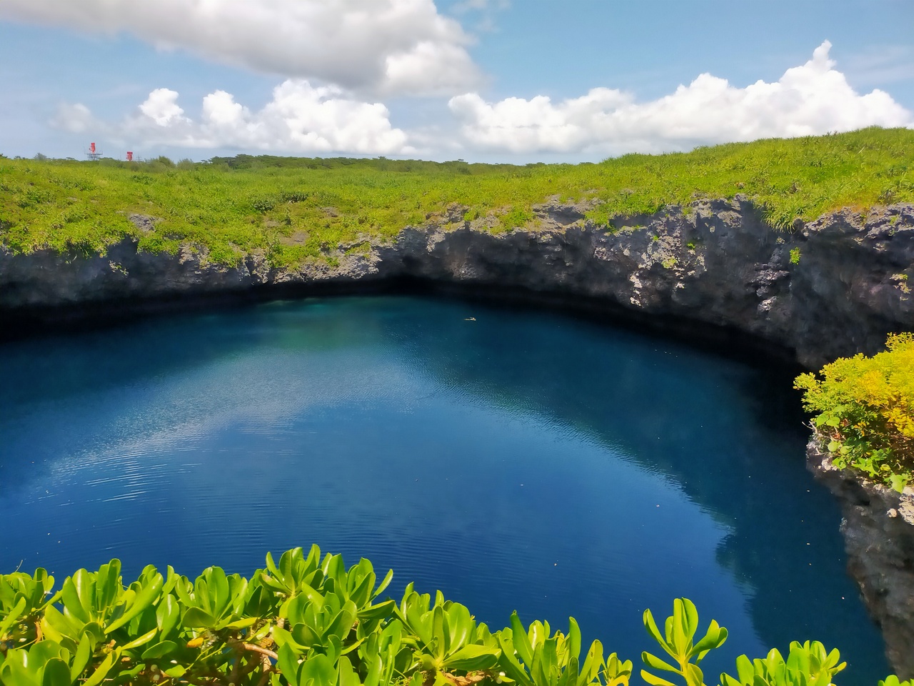 ストラトス・フォーの聖地巡礼で行ってきました。吸い込まれそうになるぐらい深い青に感動しました。日によって色が変わるらしいですが、見に行った日はいい色だったと思います。作中では主人公が飛び込んでいましたが、ダイビングで行くことは出来るようですが飛び込みは出来なさそうでした。