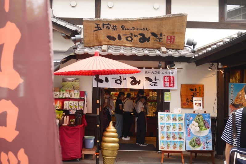 おみやげ的な利用。お茶やさんです。それからお茶を使ったソフトクリームとかかき氷なんかもあります(もしかしたらかき氷は季節限定の可能性がありますが…)。お茶のいい香りがただよう店内。また、入り口にはソフトクリームの像があるのですが、色が金色なのでなんだか…。