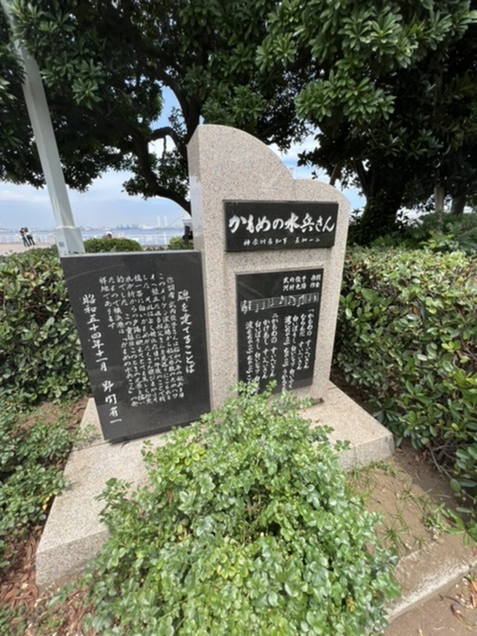 氷川丸の前にある童謡のかもめの水兵さんの歌碑です。