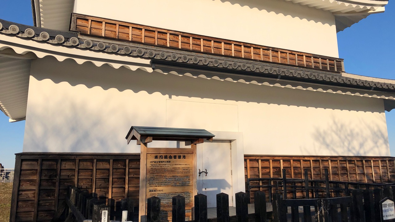 桑名城の跡地にある復元された櫓です。揖斐川沿いにあり、昔から、船で行き来する人の目印になっていたようです。桑名城には、以前は51もの櫓がありました。現在の蟠龍櫓は、揖斐川の水門としての役割があります。