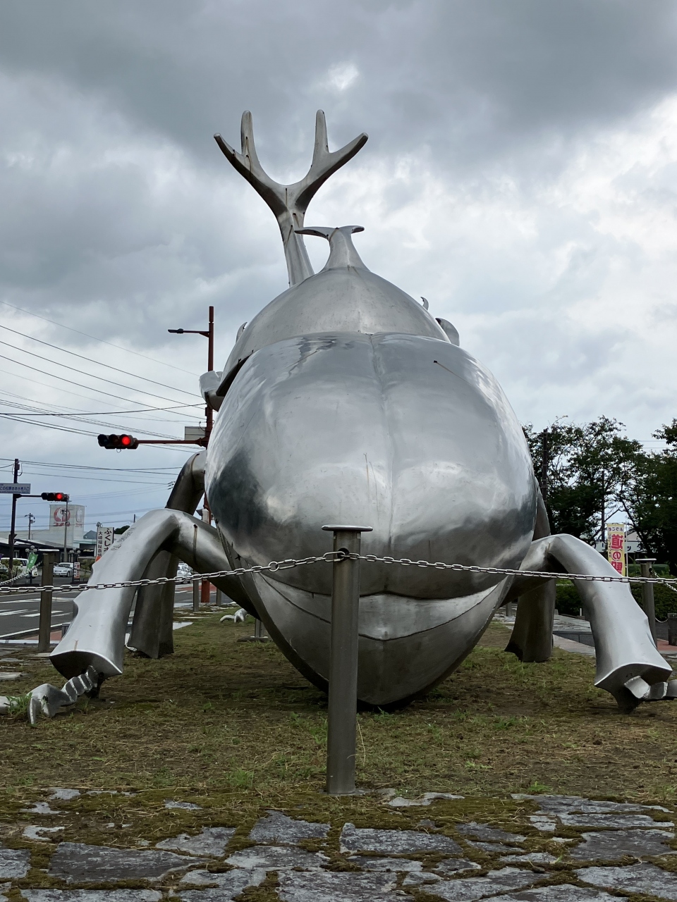 此処は宿泊施設や温泉も有る大きな道の駅で、駐車場入り口に有る巨大な銀色のカブトムシが目印です。トイレ横には観光案内所が有り、現在は整備されていなかったのですが、ふるさと見学農園もありました。商品では焼酎類は多かったです。