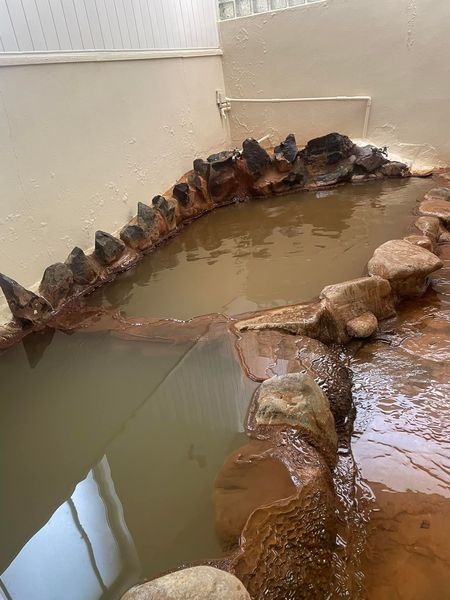 青森県にある熊の湯温泉です。褐色の濁り湯で、かけ流し。温泉の質はとても良い温泉です。