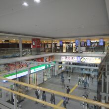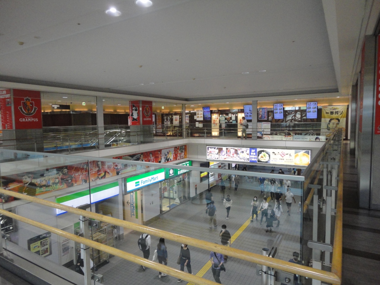 名鉄金山駅の駅舎にある施設です。改札を出ると、すぐ横にエスカレーターがあったので上がってみました。駅のコンコースを見下ろせる場所があり、行き交う人を眺められて、面白かったです。2階は飲食店が並んでいて、仕事帰りに気軽に1杯飲めそうなお店が多くて便利そうでした。