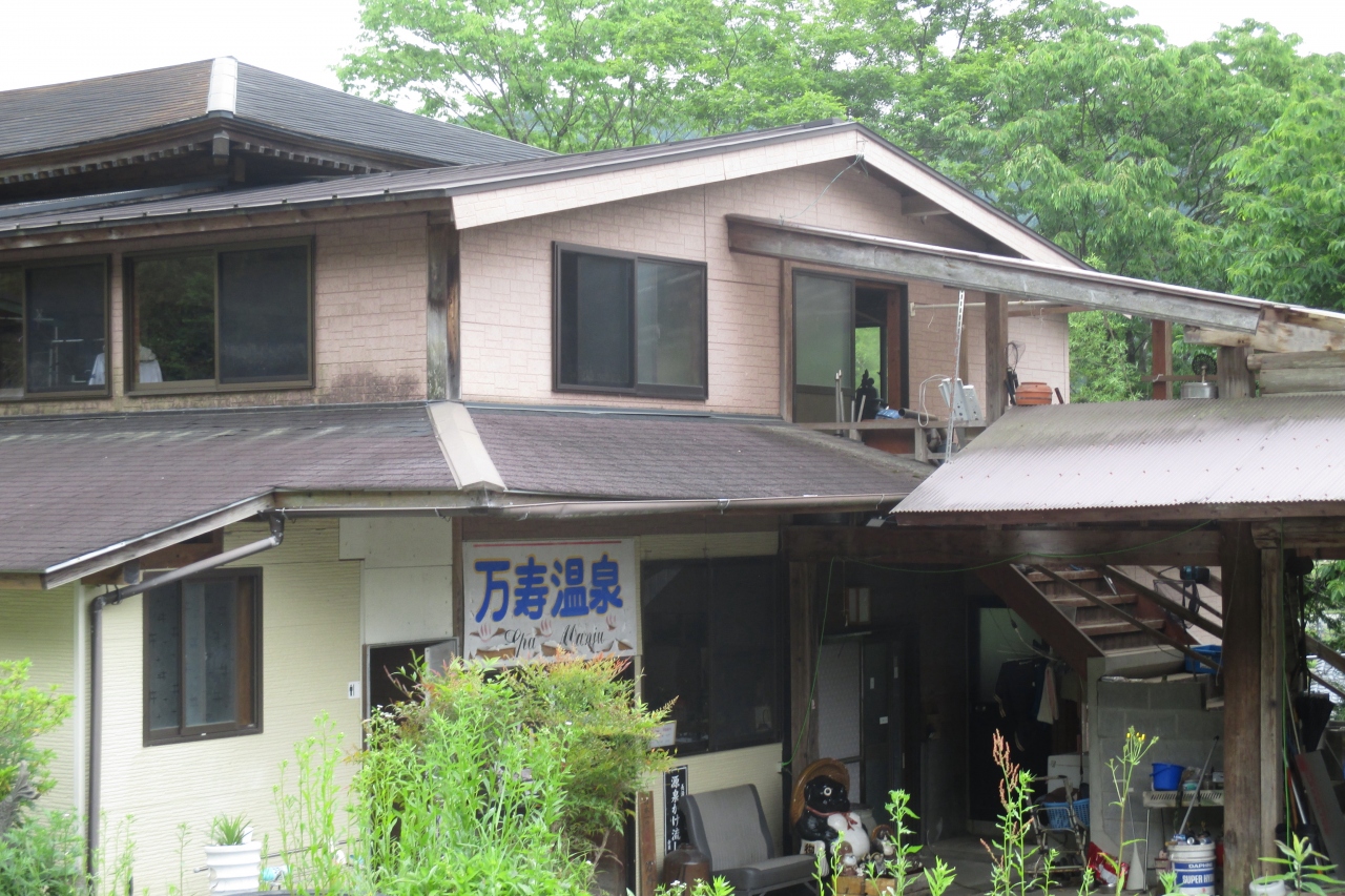万寿温泉 大山住の湯は、県道30号線沿いで、長湯温泉の桑畑地区の東部といったところにありました。長湯温泉の湯巡りをしていて、1番躊躇したところです。というのは、道路沿いの空き地に廃材などのゴミが積まれていて、ここはやっているの?と疑ったからです。利用しようと思ってきた人も通り過ぎてしまう人も多いのではないかと思いました。ここは温泉街ではありませんから、ポツンと1軒宿といった感じでした。貸切風呂もあるとのことでしたが、お客さんが誰もいなかったので一般の方を利用しました。浴室はお湯の成分が鍾乳石の様に堆積していて独特の雰囲気がありました。日常的に剥がす掃除をしないとこんな風になるのかと新しい発見をした気分でした。利用時間は08:00~21:00です。利用料金は200円となっていました。(貸切風呂は1、000円でした)源泉の温度は51.3度と高目です。源泉掛け流しにするため、いくつかの仕組みを経由していていました。泉質はマグネシウム・カルシウム-炭酸水素塩泉で、うすい黄褐色をしていました。
