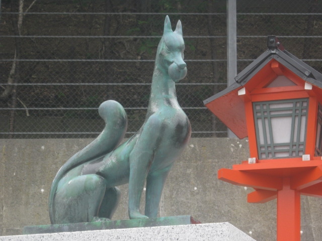 本堂向かって左手に、お墓のようなのと小さな稲荷神社が並んでいる区画があって、こちらは前回記憶がなかった(或いは雪に埋もれていたのかも?)ので、割と新しく作られたのかもしれません。ここのキツネさんがなかなかお洒落なので、見応えがあります。
