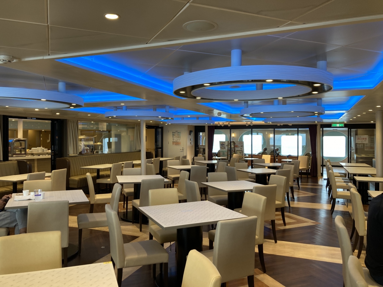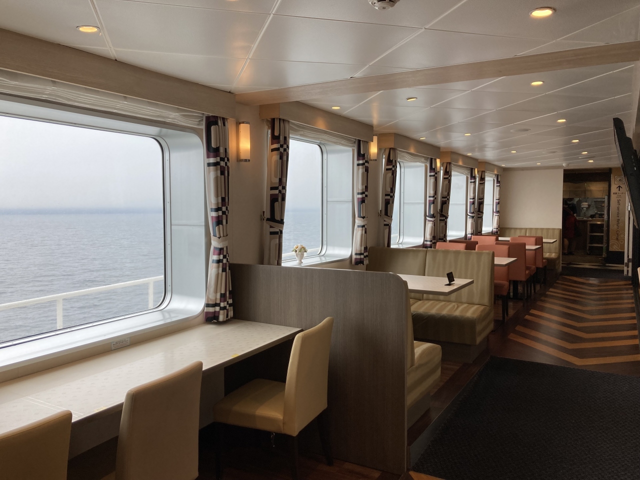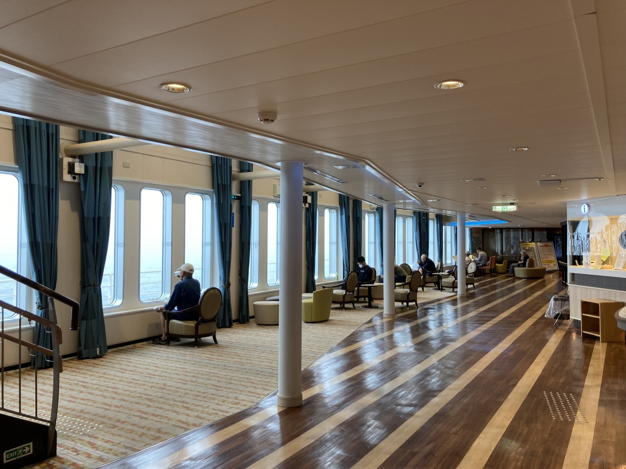 乗客も多いが、パブリックスペースのあちこちに座る場所があるので、船内を散策したり海を眺めたりしていると退屈しない。