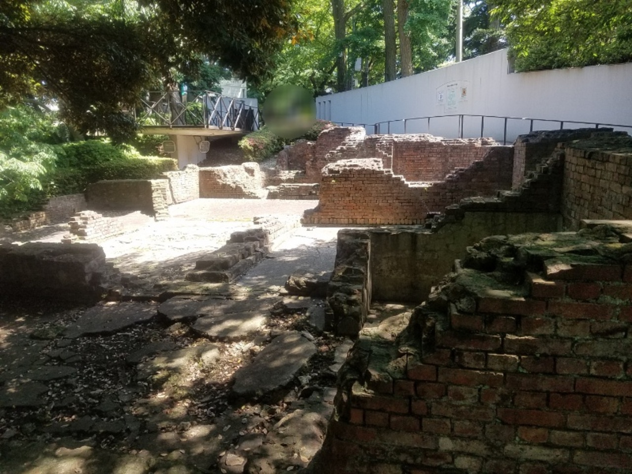 ジェラールの瓦工場と水屋敷跡を見てからまた元町公園を上って行くとありました。きれいな西洋館の姿を見るのも良いですがこういった建物の基礎部分の遺構を見るのも理解が深まって良いですね。山手本通りから見るとエリスマン邸の奥になって見逃しやすいので気を付けてください。