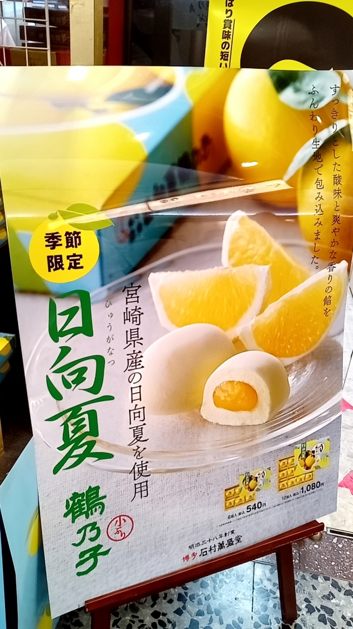 東京・有楽町の『東京交通会館』のB1Fにある福岡県・博多のアンテナショップ『ザ・博多 有楽町店』では、老舗の和菓子『鶴乃子』が販売されていました。「日向夏の鶴乃子」で、季節限定商品です。『鶴乃子』は、昭和天皇もお召し上がりになられていた『献上菓子』です。