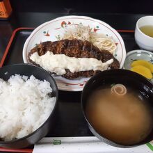 日替わりがチキン南蛮だったので日替わりにしました。700円。びっくり…チキンは黒く焦げてました。