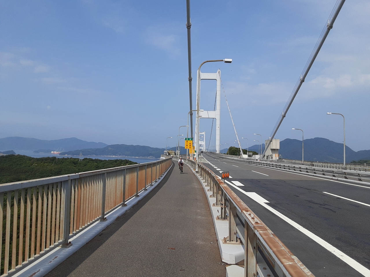しまなみ海道をサイクリングで往復しました。行きは広島方面から今治に向かったので、ラストスパート。逆に帰り道は、今治出てすぐ、元気なうちに橋を制覇できました。眼下には渦潮も見え、また瀬戸内の島々の絶景もよかった。爽快なサイクリングでの橋横断を楽しめました。