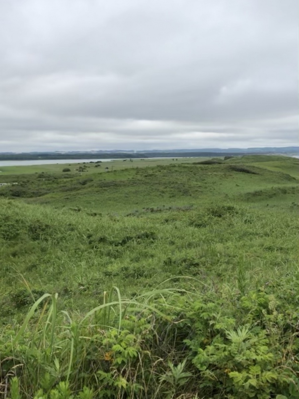 花盛りを期待していましたが、赤いハマナス、紫のアヤメ、黄色の百合のような花が少し咲いている程度。緑がある中にポツポツと。枯れているものもありました。