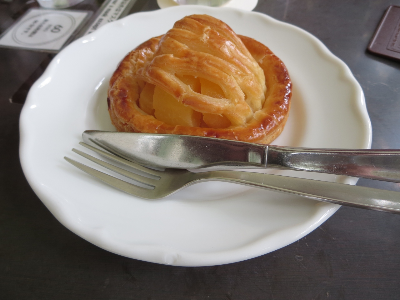 私はカスタードクリームとカシスの入った温かいアップルパイを頂きました。