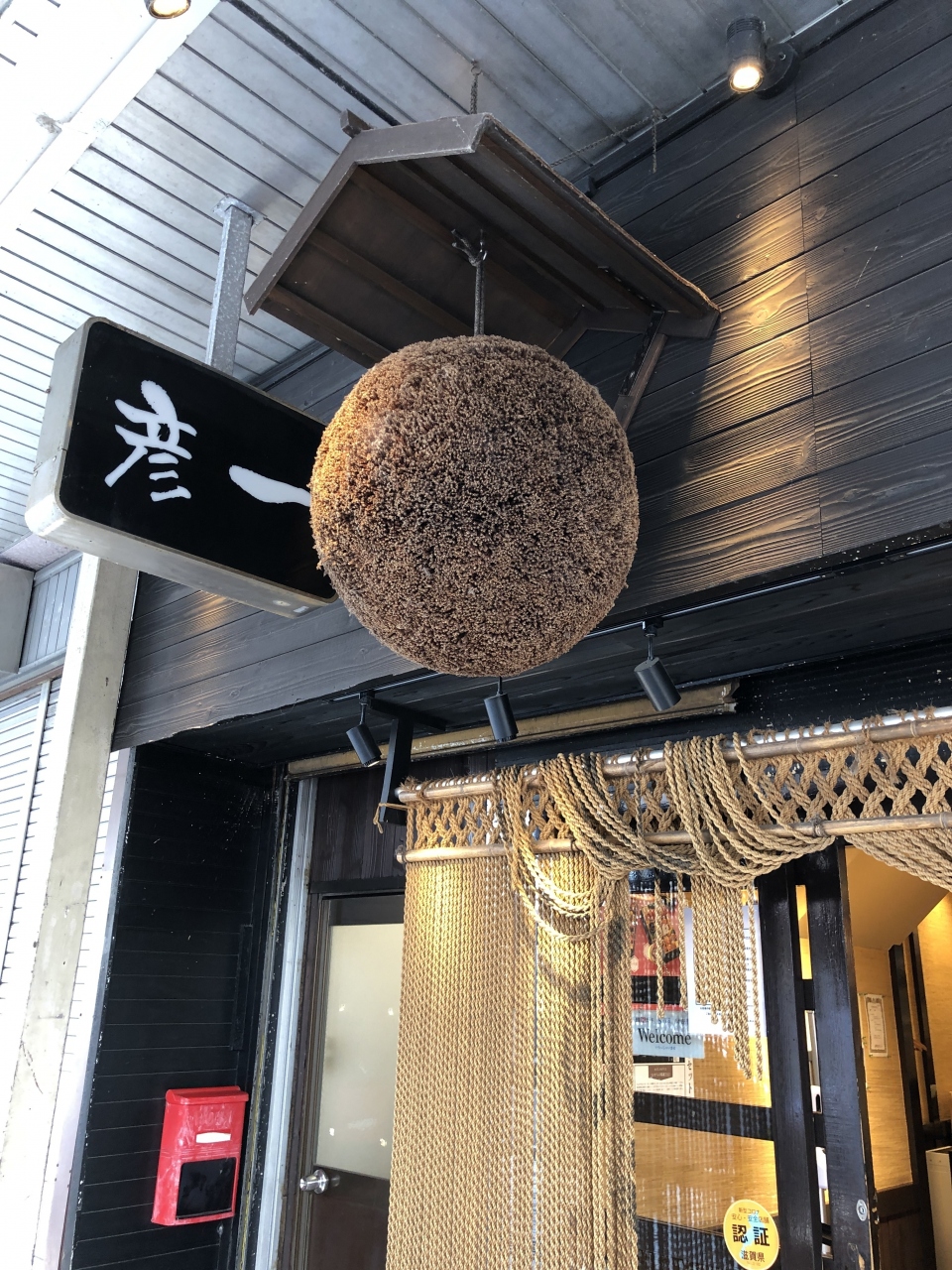関西旅行、彦根でランチ処を探して、良さげな雰囲気の居酒屋へ。入り口に杉玉というらしい、木のボールが下がっていて雰囲気がある。